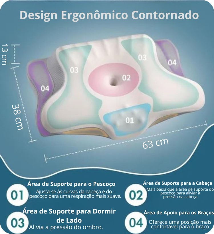 Mais que um travesseiro, é uma solução completa para noites de sono reparador. Seu design ergonômico reduz a tensão muscular e melhora a postura, proporcionando um descanso profundo e confortável.