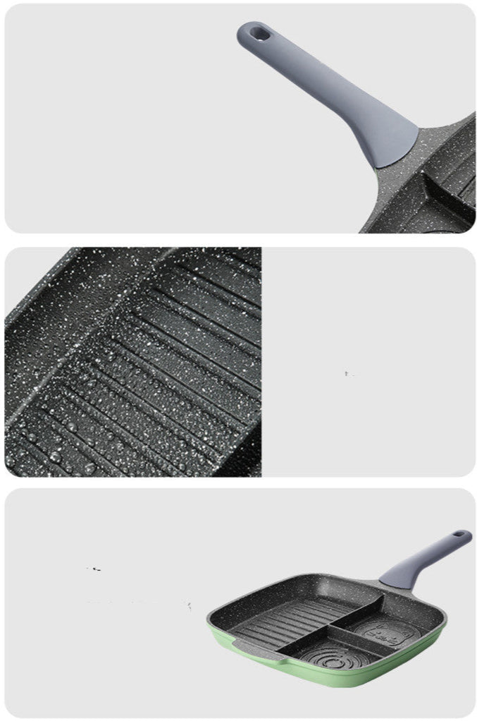 A Frigideira 3 em 1 combina praticidade e charme na sua cozinha. Feita em liga de alumínio com acabamento antiaderente, garante aquecimento uniforme e fácil limpeza. Compacto, divertido e funcional, é ideal para preparar cafés de manhã rápidos e saborosos todos os dias.